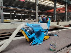 客戶訂購的移動式鋼板拋丸機 調(diào)試現(xiàn)場除銹效果